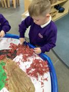 Nursery have been busy developing their fine motor skills with lots of fun funky fingers activiites. It's really important that they build up the strength in their fingers so they can develop a strong pencil grip.
