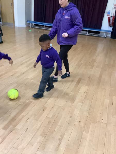 Nursery are so excited that this half term they will be having a training session with Blackpool Football Club every Wednesday! This week we were learning how to dribble the ball using penguin feet and the side of their feet (big toe, little toe!) The children throughly enjoyed the session and can't wait to build our football skills!