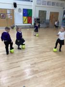 Over the next half term, each week, Reception will be having a PE lesson with Blackpool Football Club. They will learn the fundamental skills of listening, moving in different ways, throwing and catching a ball. controlling a ball with their feet, taking turns and showing respect. We also learned the importance of warming up before exercising.