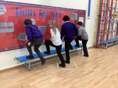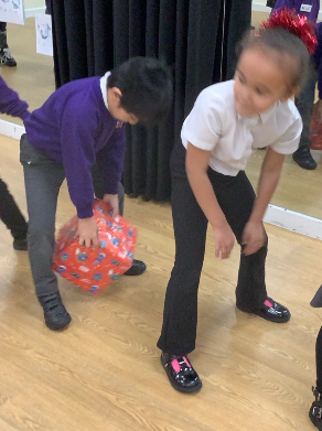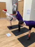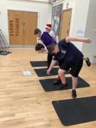 We all took part doing different sporting activities in the dance studio. There were six Elf Stations, The Ski Lodge, Christmas Yoga, Santa's Step Up, Toy Soldier Pressups, Elf Hurdles and the Snowball Toss