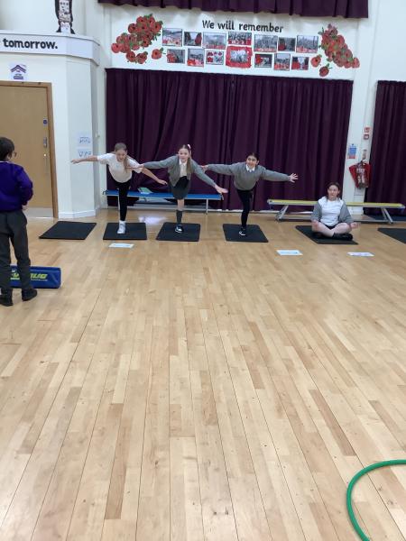 This half-term we have been developing our gymnastic skills. This week, we have worked in pairs and larger groups to demonstrate our core strength, balance and team work abilities. As you can see from the photos, some of our pupils challenged themselves and, with the support of teachers and our Sports Coach, worked in larger groups to create a variety of shapes.