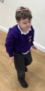 Nursery follow the "Squiggle While You Wiggle" programme to support the development of their gross motor skills. Part of this is to do a series of movements on paper using a pencil in both hands. This terms movements have been "up, down, side, side, cross over". This is always done on a large scale and will eventually help the children to hold a pencil correctly and form letters.