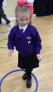 Every Thursday the children have a PE session with our sports coach, Mr Ratcliff. The children learn a range of different skills from throwing and catching to controlling their speed as they move safely around spaces and across obstacle courses. They explore different PE equipment including bats, balls and bikes and also the importance of working as a team.