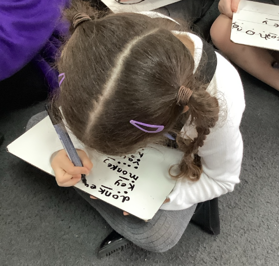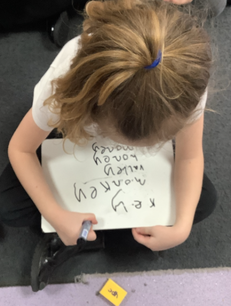 This half term in Phonics, we have been focusing on alternative sounds for graphemes already taught. Yesterday, we were looking at alternative for 'ee' being 'ey'. We discussed how the 'ey' would typically come at the end of the word and the 'ee' and 'ea' would usually be in the middle to help us differentiate when spelling. We practised reading lots of words with the diagraph in before attemtping to applying our new knowledge to writing.