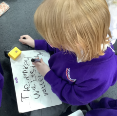Handwriting is a huge focus in Reception. To support some of our children who find handwriting and fine motor control challenging we have introduced a new intervention called Pegs to Paper. The intervention happens three times per week and is designed to help develop a more fluent handwriting approach focusing on pencil grip. control, movement and pressure. The children have thoroughly enjoed practicing with the specially designed pegs and boards and have been working hard to transfer these skills when writing in class.