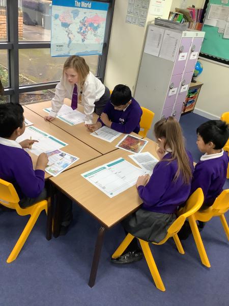During the Year 3 oracy lesson, pupils focused on how to structure clear and effective sentences while taking part in group discussions. Each group used discussion roles such as instigator, builder, prober, challenger, clarifier and summariser to help ideas develop and stay focused. The children discussed imaginative and engaging topics, including what they would do if they could stop time for a day, what job they would like to have when they are older, and whether they would rather hop or crawl everywhere. The lesson supported confident speaking, active listening and collaborative thinking.