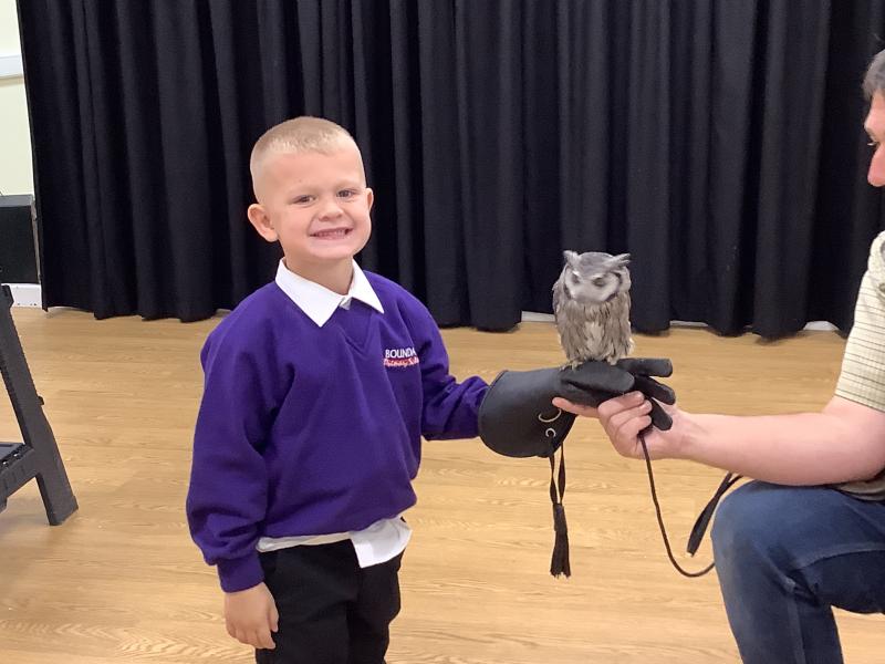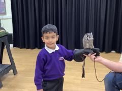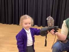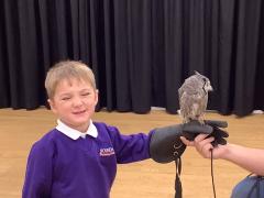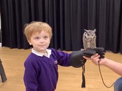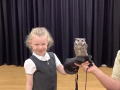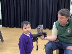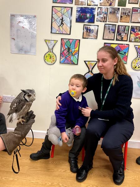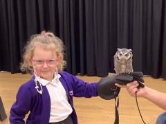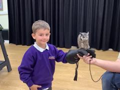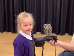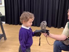 This week the children were lucky enough to have a visit from SMJ Falconry, who brough 4 owls including JD, Midge, Tike and Bugs. The children learnt lots of different facts about the owls including what they eat, their different appearances and how and when they hunt. The children enjoyed observing a flying demonstration and were even lucky enough to hold an owl. What a fabulous experience!