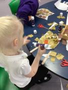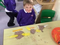 They used all their senses to explore the ingredients and had fun feeling the flour, mixing in the water and mark making - we got very messy!