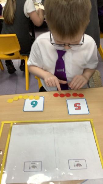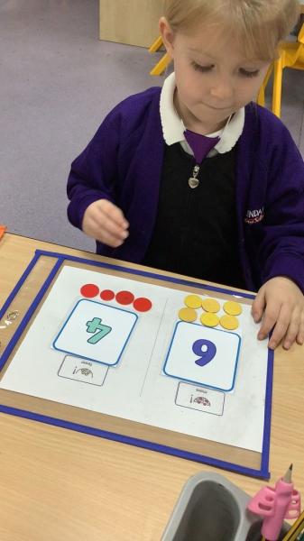 This week we have been using the language of more and fewer to compare amounts. We have used a range of representations and numbers to compare within 10. Later this week, we will be introduced to the symbols < > and = and begin to use these to compare.