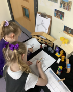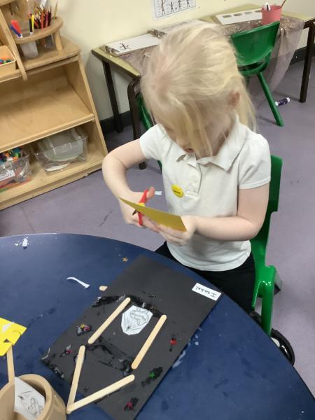 After reading the story "There's an Alien in your Book" the childlren followed instructions to create their own Aliens. They had to select the right amount of buttons, beads, eyes and pipe cleaners and then chose how to arrange then to create their alien.