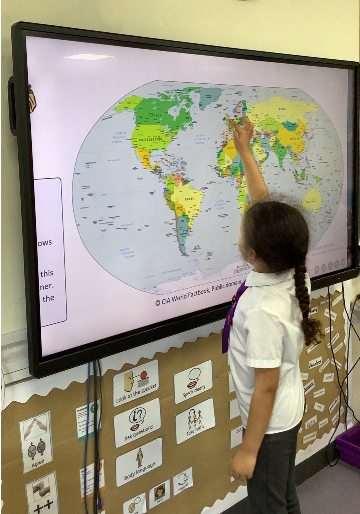 Next, we zoomed out to look at the four countries of the United Kingdom—England, Scotland, Wales and Northern Ireland—and located where Blackpool sits within the UK. After that, we travelled even further out, exploring the seven continents of the world and gaining a sense of how Blackpool fits into the wider world.